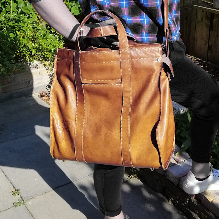Deze handgemaakte leren tote bag is de perfecte combinatie van stijl en functionaliteit. Een tas die speciaal gemaakt is voor Caroline. Zo kan zij goed voor de dag komen met al haar werkmappen en laptop om muziekles te geven!