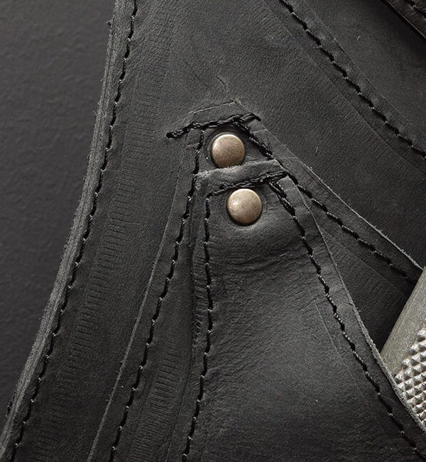 De gereedschapshouder voor aan de riem is gemaakt van standig vintage rundleer en voorzien van meerdere compartimenten. Hierdoor blijft je gereedschap georganiseerd en direct bereikbaar tijdens het werk.